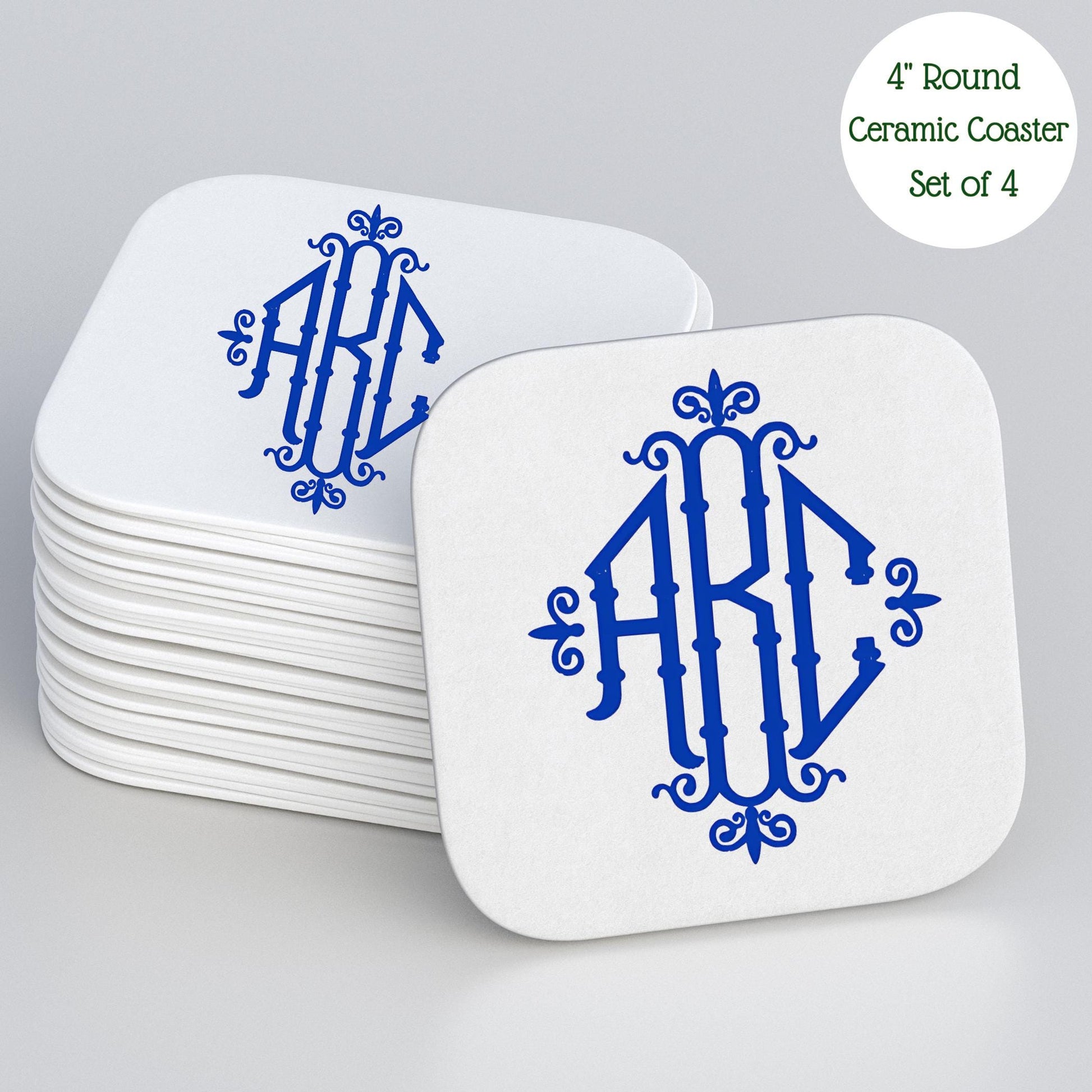 4" Round or Square Ceramic Cork-Back Coaster (Set of 4)