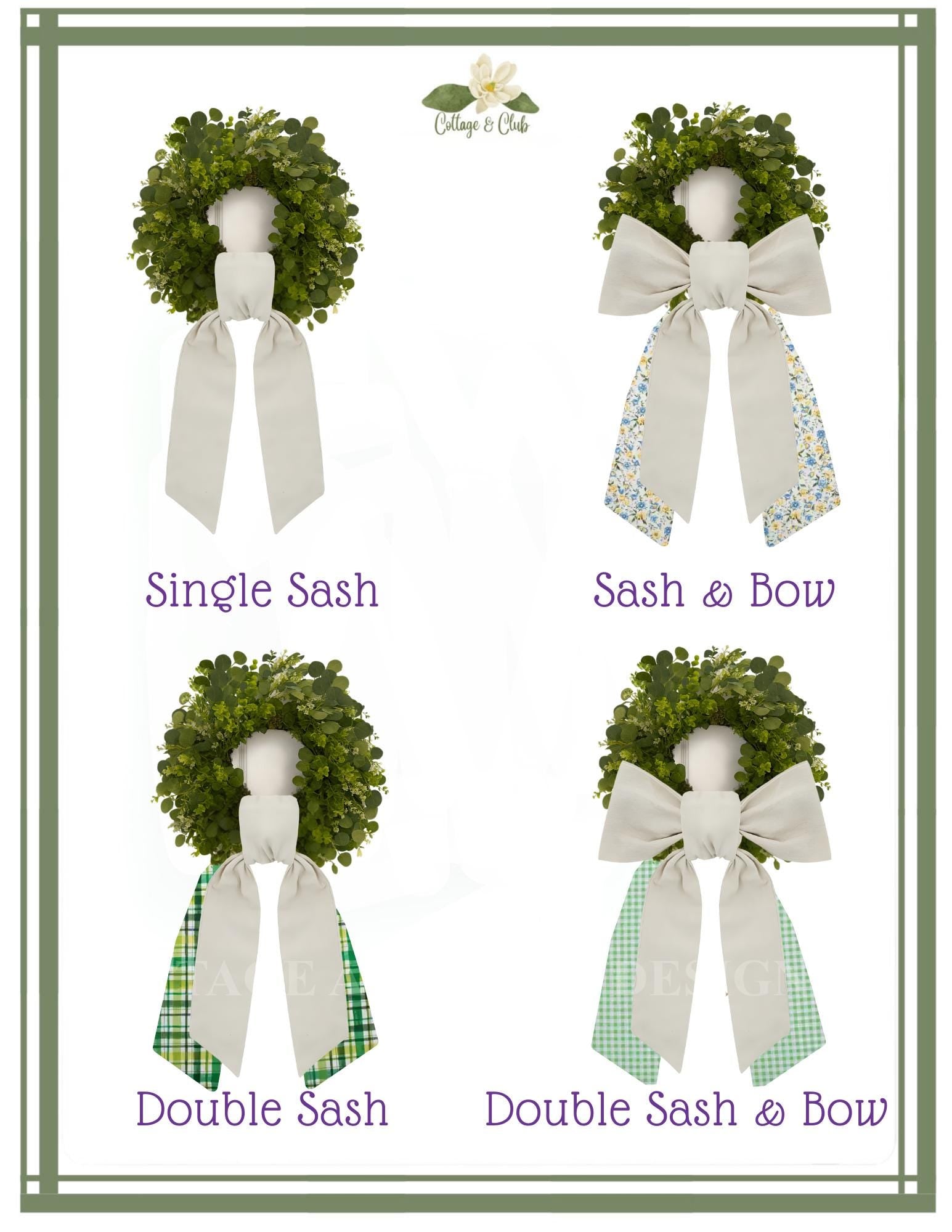 A timeless, tailored look with one sash tied onto your wreath—clean, classic, and always in style.