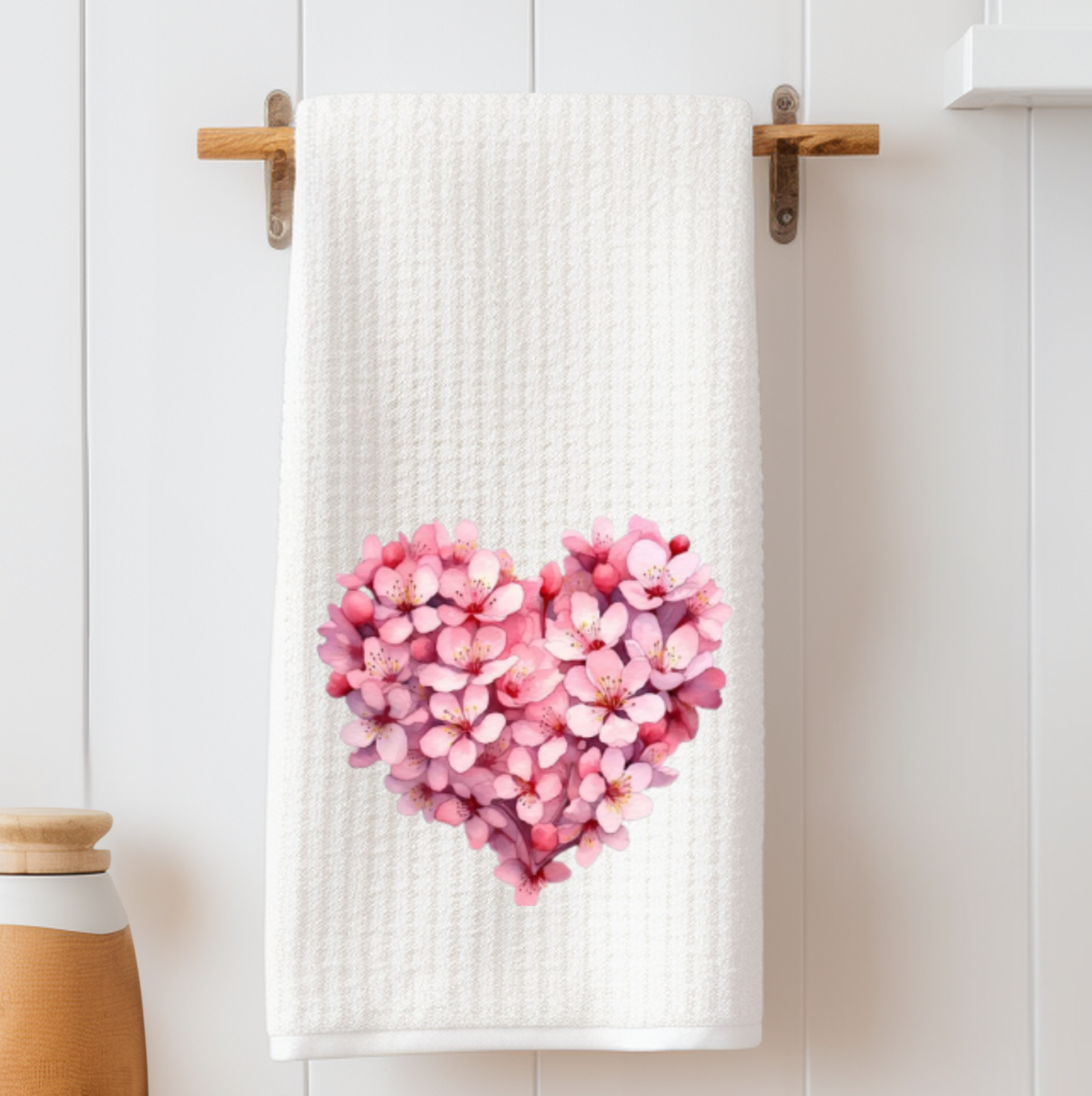 Cherry Blossom Heart Waffle Weave Tea Towel