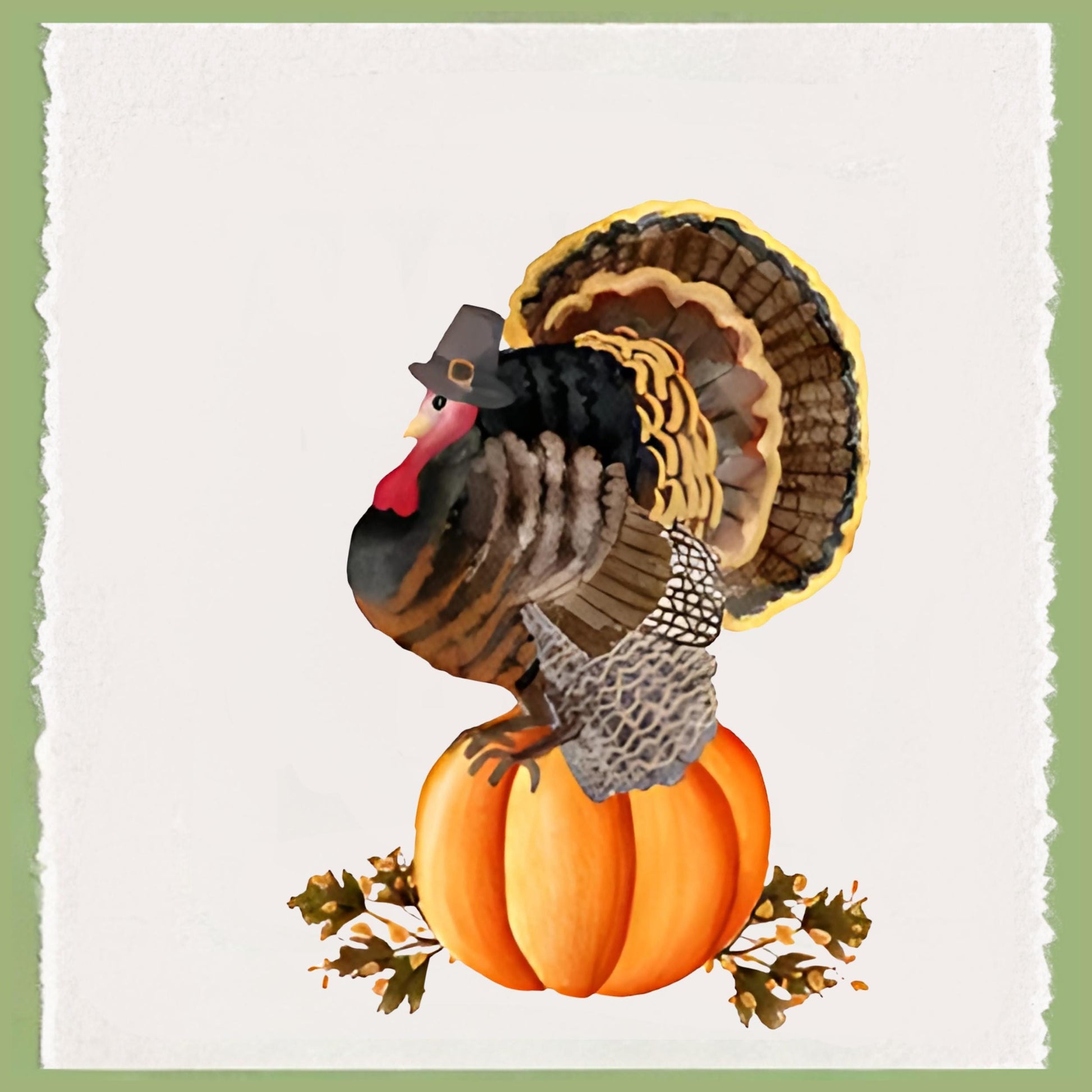 Fall Thanksgiving Turkey & Pumpkin Holiday Tea Towel - Personalized Kitchen Decor