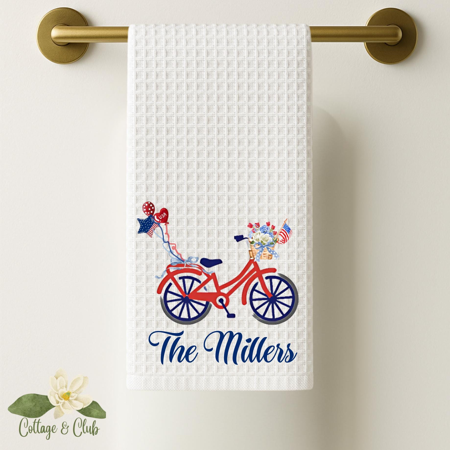 Personalized Chinoiserie Tea Towel: Monogrammed Independence Day Kitchen Decor