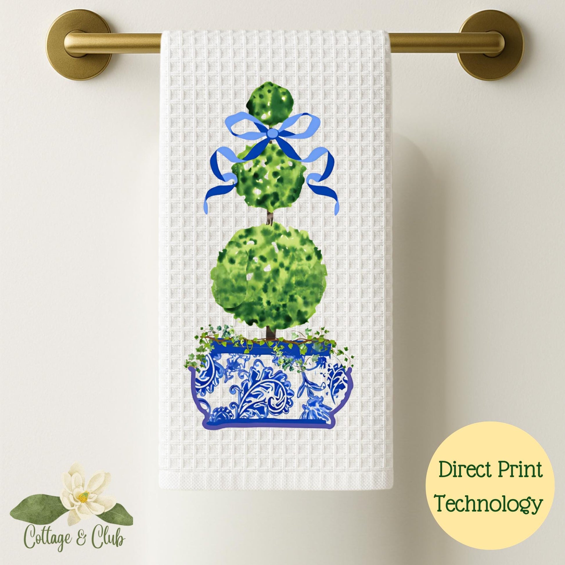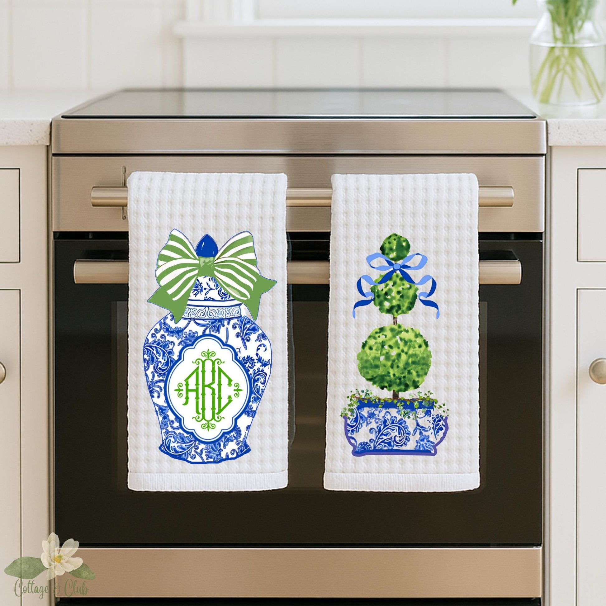 Blue & White Ginger Jar Topiary Tea Towel Set: Grand Millennial Decor