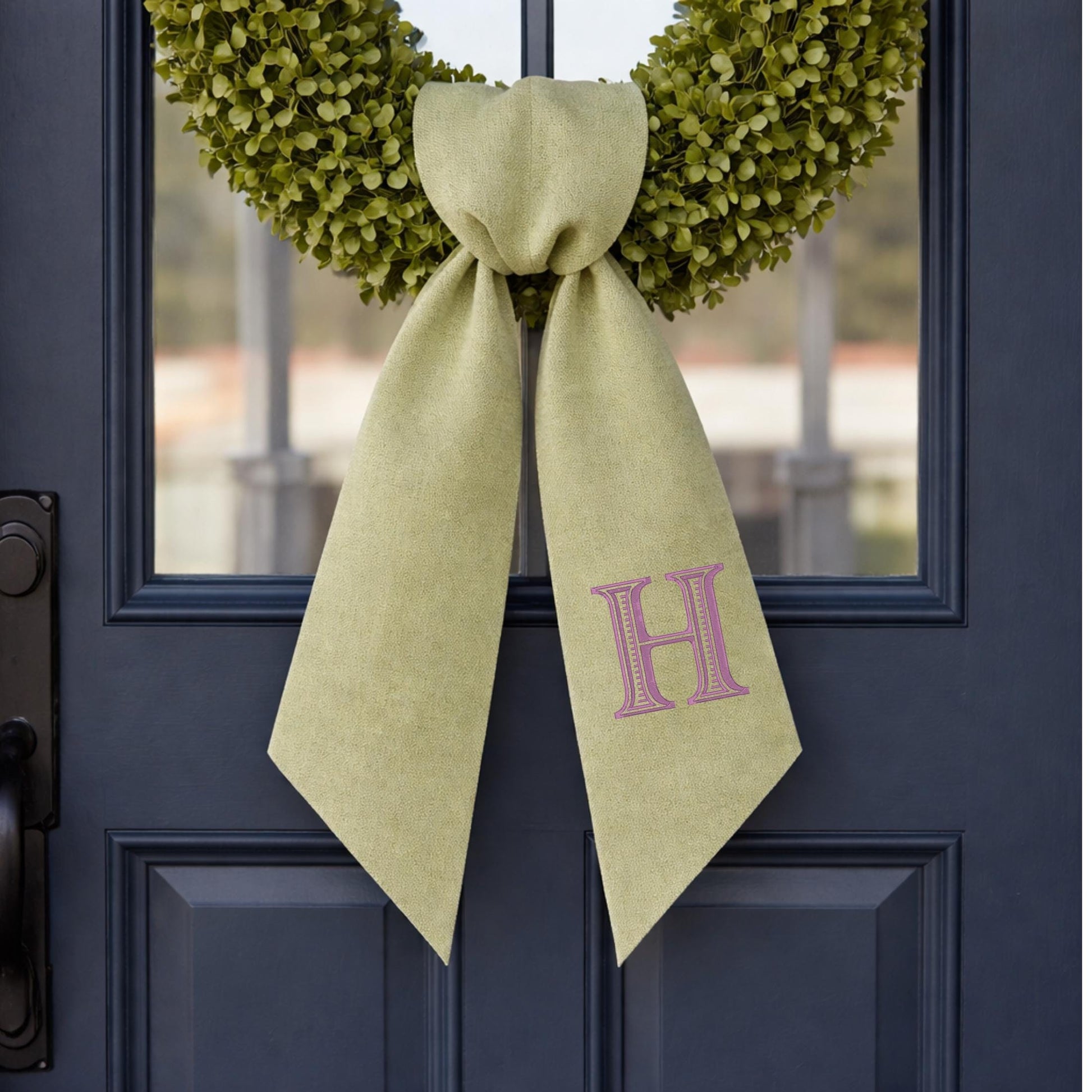 Monogram Wreath Sash, Wreath Sash For Front Door, Embroidered Front Door Bow, Initial Door Sash, Monogram Wreath Ribbon,Wreath Scarf